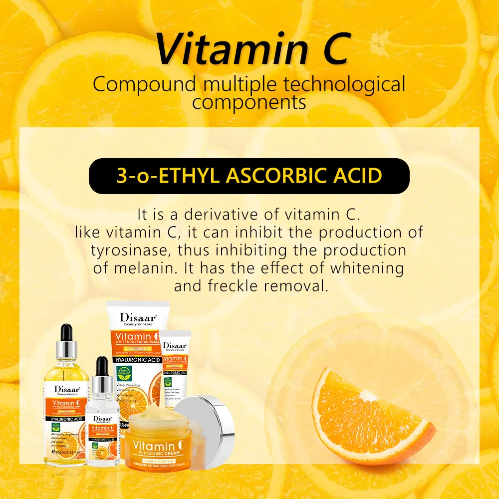 Découvrez Gamme de Soins de Visage à la Vitamine C (Disaar): Cette formule antioxydante innovante a été conçue pour révéler une peau visiblement parfaite et saine.